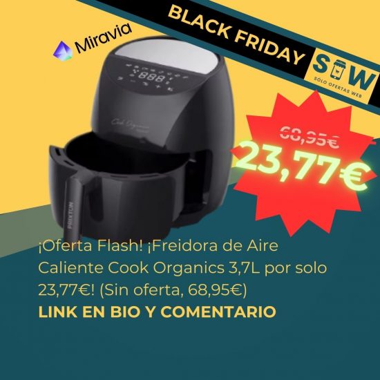 🔥 ¡Oferta Flash Imperdible! Obtén un 51% de descuento en la Freidora de Aire Caliente Cook Organics de 3,7 litros. Ahorra 34,99€ y disfruta de comidas saludables. ⏰ ¡Tiempo limitado! Compra ahora en Miravia. 🌐 #OfertaEspecial #Descuentos #CocinaSaludable