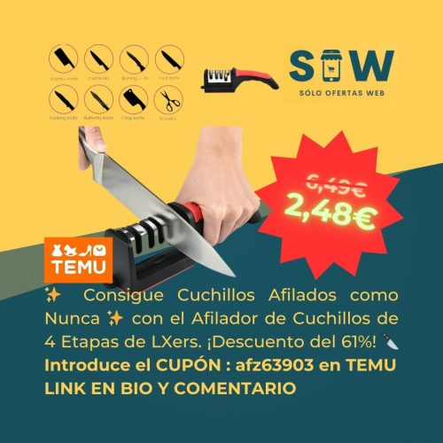 ¡Haz que cocinar sea un placer! 🔪✨ Descubre el Afilador de Cuchillos de 4 Etapas de LXers: fácil de usar, duradero y con un descuento increíble del 61%. Afilado profesional en la comodidad de tu hogar. 🏡 ¡No te pierdas esta oferta exclusiva! 🌟 #OfertaEspecial #CuchillosProfesionales